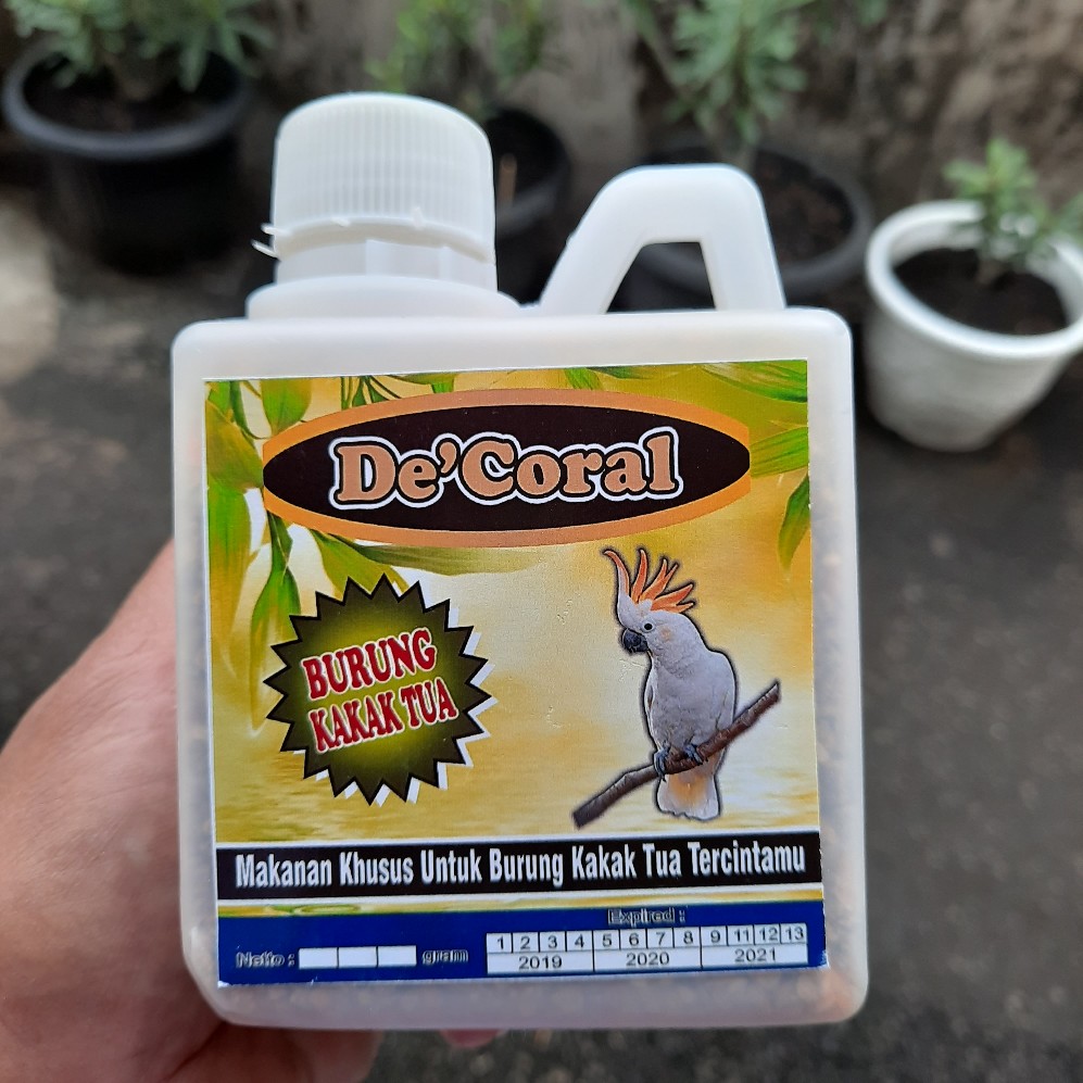 Makanan burung kakak tua de'coral terbuat dari bahan alami terbaik dikemas.